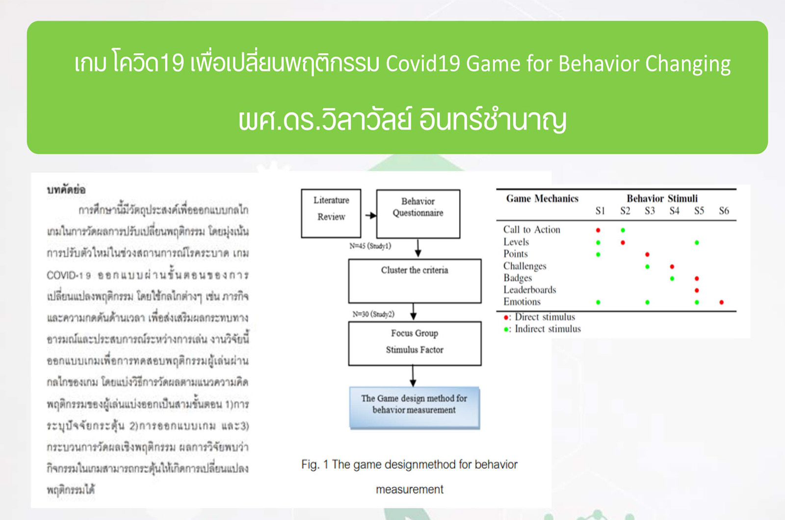 การออกแบบกลไกเกมในการวัดผลการปรับเปลี่ยนพถุติกรรม การปรับตัวใหม่ในช่วงสถานการณ์โรคระบาด เกม C0VID-19 ออกแบบผ่านขั้นตอนของการเปลี่ยนแปลงพถุติกรรม โดยใช้กลไกต่างๆ