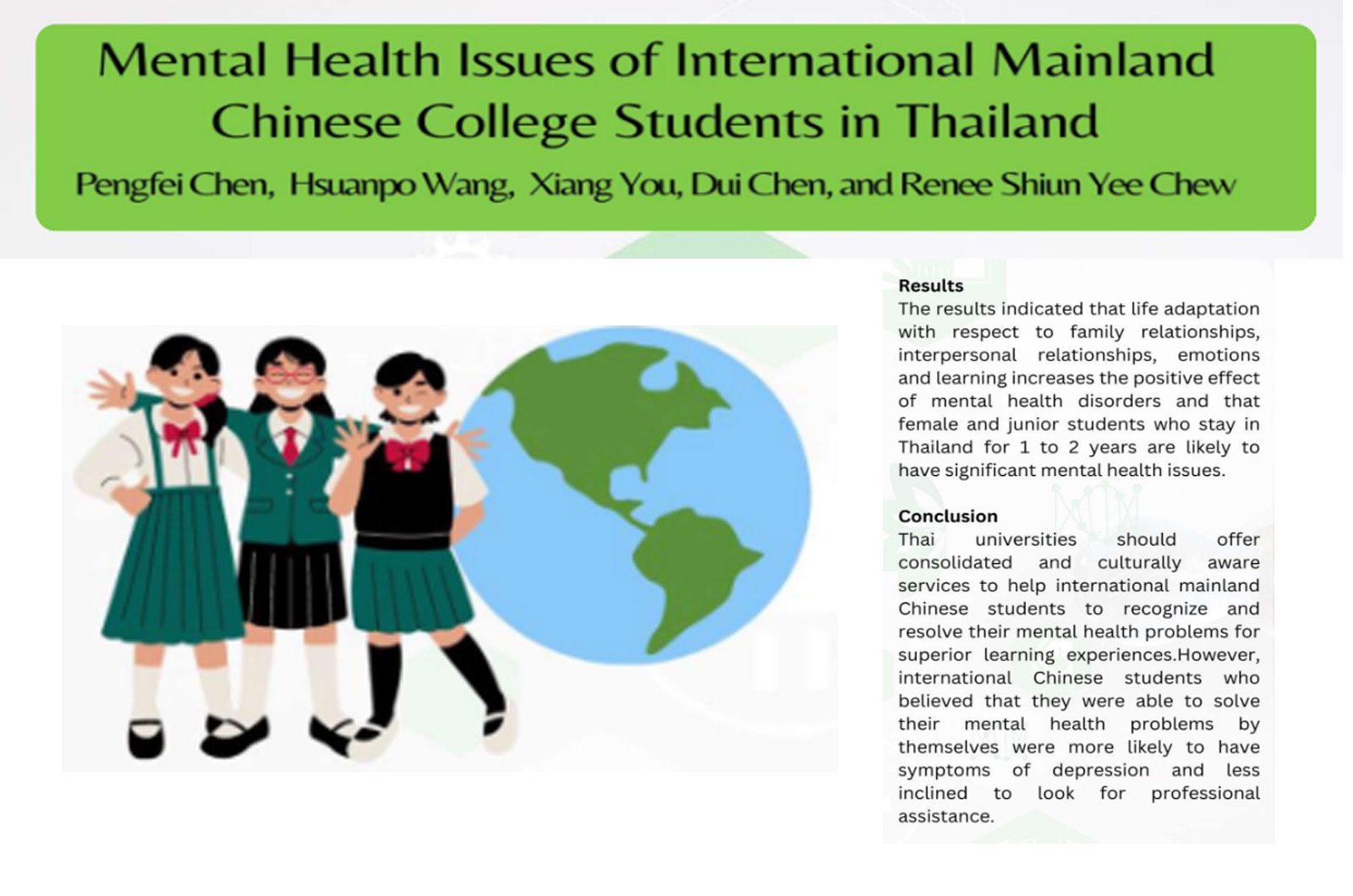 This study extends previous research by examining the mental health issues of international mainland Chinese college students in Thailand