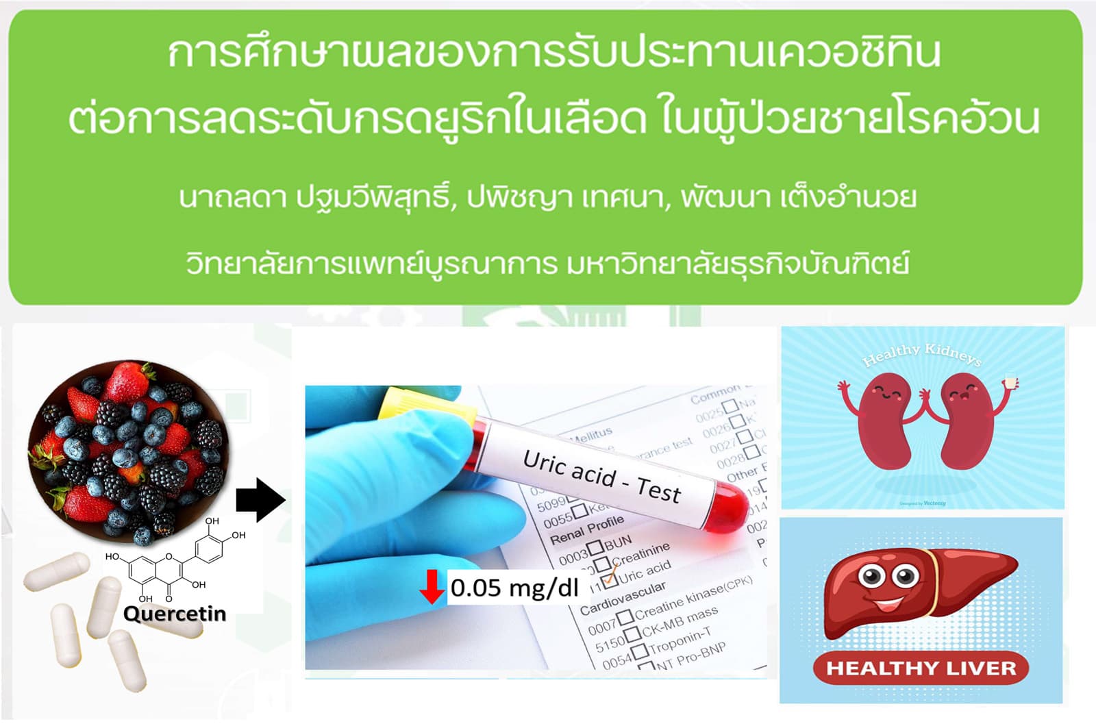 ภาวะกรดยูริกในเลือดสูงอาจก่อให้เกิดโรคเกาต์และนิ่วในทางเดินปัสสาวะ จึงมีการใช้สารพฤกษเคมีเข้ามาทดแทน อาทิเช่น เควอซิทินซึ่งมีคุณสมบัติ ในการยับยั้งเอนไซม์ xanthine oxidase และช่วยเพิ่มการขับกรดยูริกออกทางไต