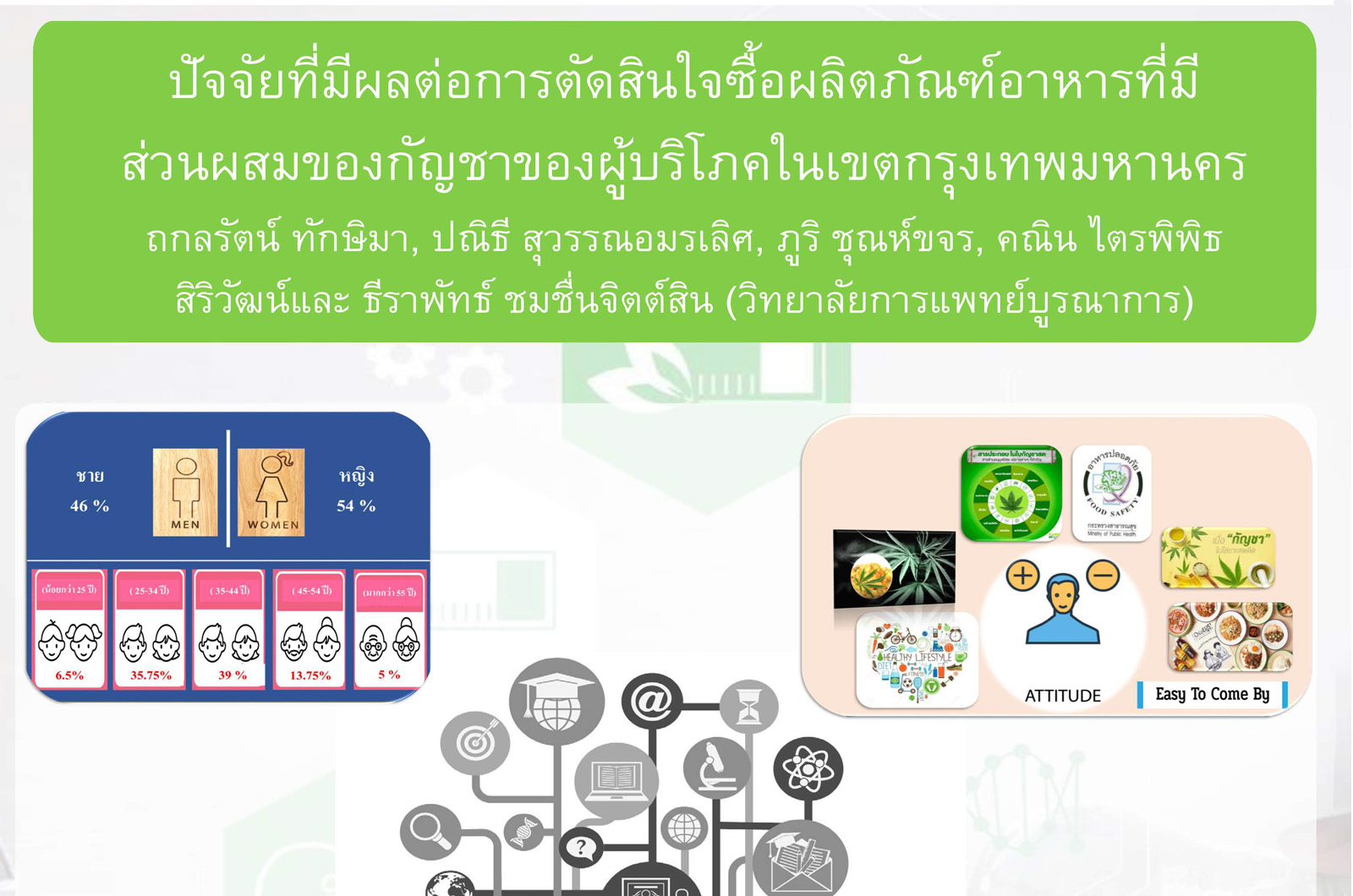 ปัจจัยที่มีผลต่อการตัดสินใจซื้อผลิตภัณฑ์ อาหารที่มีส่วนผสมของกัญชาของผู้บริโภคเพื่อเสนอแนวทางในการพัฒนาผลิตภัณฑ์อาหารที่มีส่วนผสมของ กัญชาสำหรับผู้บริโภค