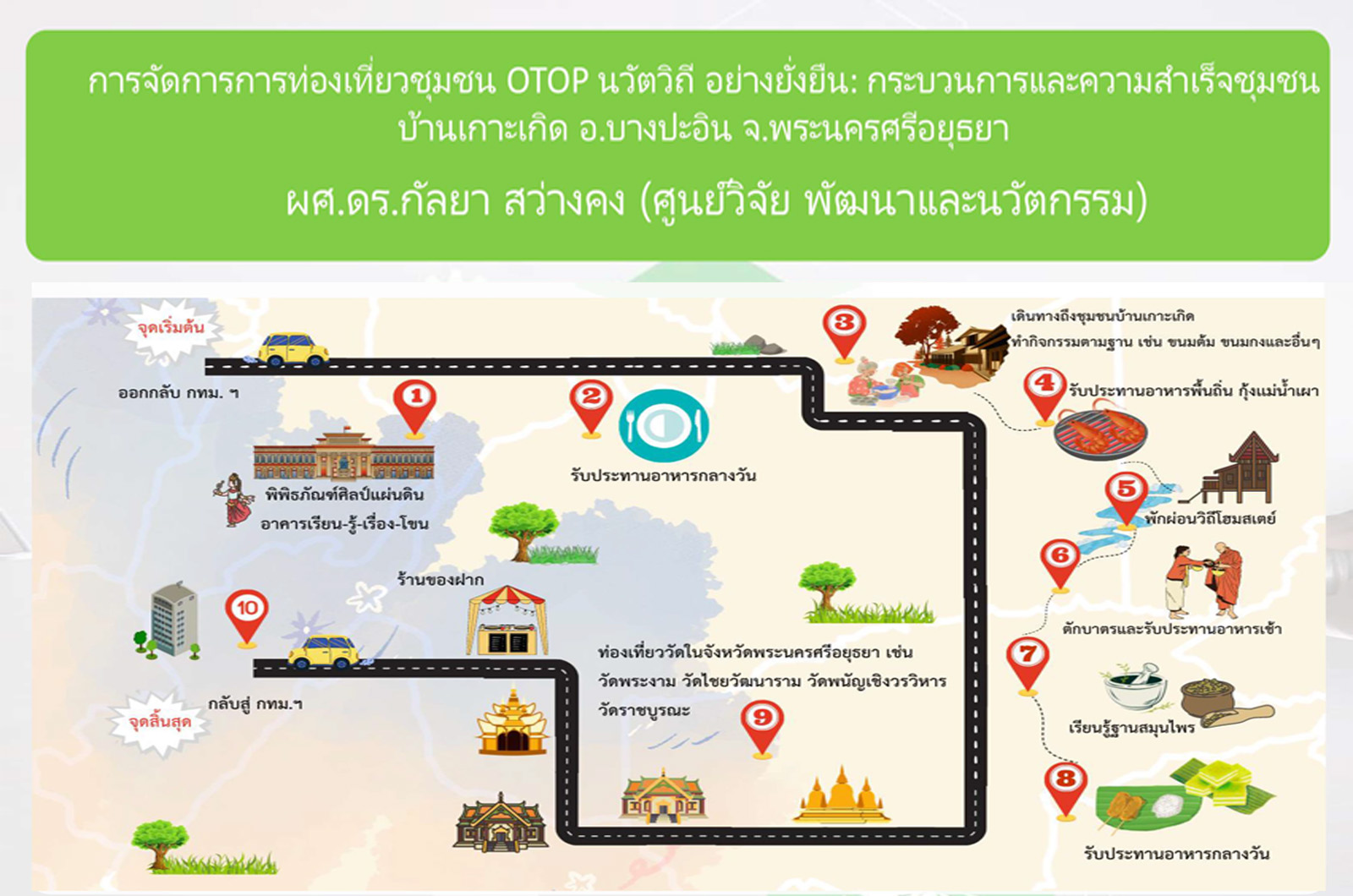 งานวิจัยเชิงคุณภาพกระบวนการจัดการการท่องเที่ยว ชุมชน OTOP นวัตวิถีอย่างยั่งยืนของชุมชมบ้านเกาะเกิด อำเภอบางปะอิน จังหวัดพระนครศรีอยุธยา